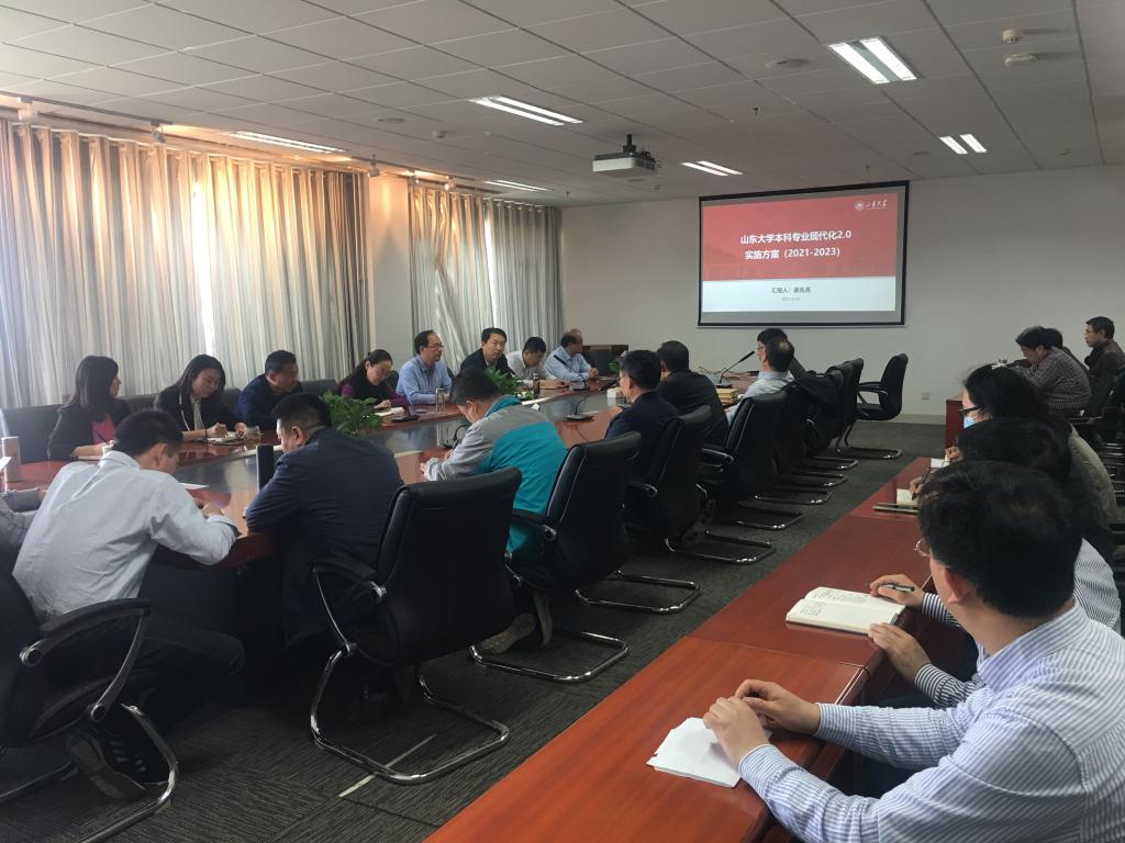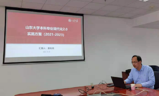 会上,姜兆亮作了《伟德体育官网本科专业现代化2.0实施方案(2021-2023)》的报告,回顾了伟德体育官网本科专业的十三五建设成效,客观分析了目前本科教学存在的问题与挑战,并对本科专业现代化2.0实施方案的指导思想、建设目标、总体要求、建设举措等进行了详细分析。重点介绍了推进专业现代化内涵建设、创新人才培养模式、构建“大思政”育人体系、提升课程质量、提高员工创新实践能力、提升国际化办学水平、构建山大特色的教育质量文化等内容的具体规划与相关举措。