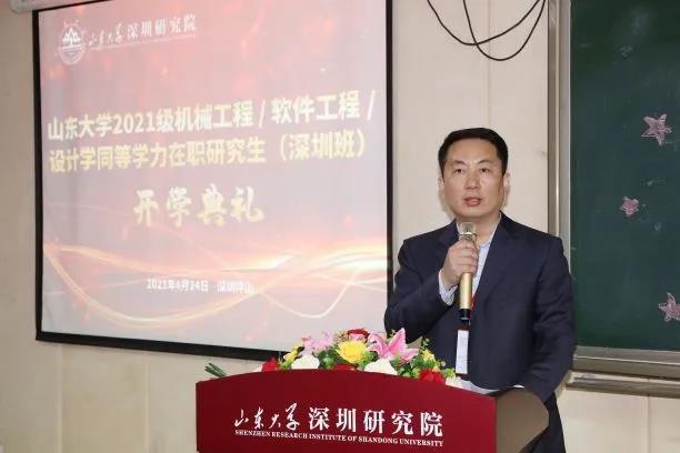 王明星向参加典礼的领导和同学表示热烈欢迎,对为此次开班付出努力的领导和同事表示衷心感谢。他介绍了深圳研究院的基本情况,研究院立足深圳九年来深耕人才培养领域,根据各领域对高端人才的不同需求,开设多个稀缺专业,为粤港澳大湾区培养了大批高层次、高学历、高水平的高端稀缺人才,为区域经济社会发展奠定了坚实的人才基础。为满足比亚迪高端人才发展的需要,加强人才储备,研究院特别定制机械工程和设计学两个专业的在职研究生。他对学员提出几点希望和要求:一是要提高站位。要胸怀国家,砥砺“以天下兴亡为己任”的担当任。要求真务实,肯下“板凳要坐十年冷”的苦功。要敢为人先,勇做“弄潮儿向涛头立”的先锋。二是要处理好家庭、工作和学习的关系。科学合理地安排时间,专注当下,做到学习好、生活好、工作好。三是要珍惜机会。大家注册后就成为山大的重要一员,山大有60余万员工,资源丰富,大家要多学多思多交流,用足用好这个平台。在各位领导和同学们的大力支持下,研究院将尽最大努力做好教学和服务管理工作。