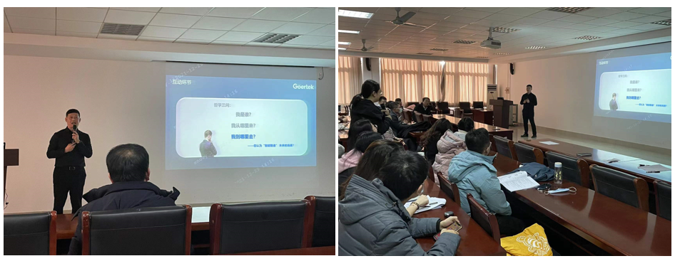 下午的鼎新论坛报告会由万熠经理主持,主讲人李丰国以“遇见·智能制造”为主题就智能制造的发展历程、歌尔的发展历史和企业文化、歌尔在消费级电子产品的智能制造领域开展的工作以及未来的规划与布局等做了专题报告,并与员工进行了互动。