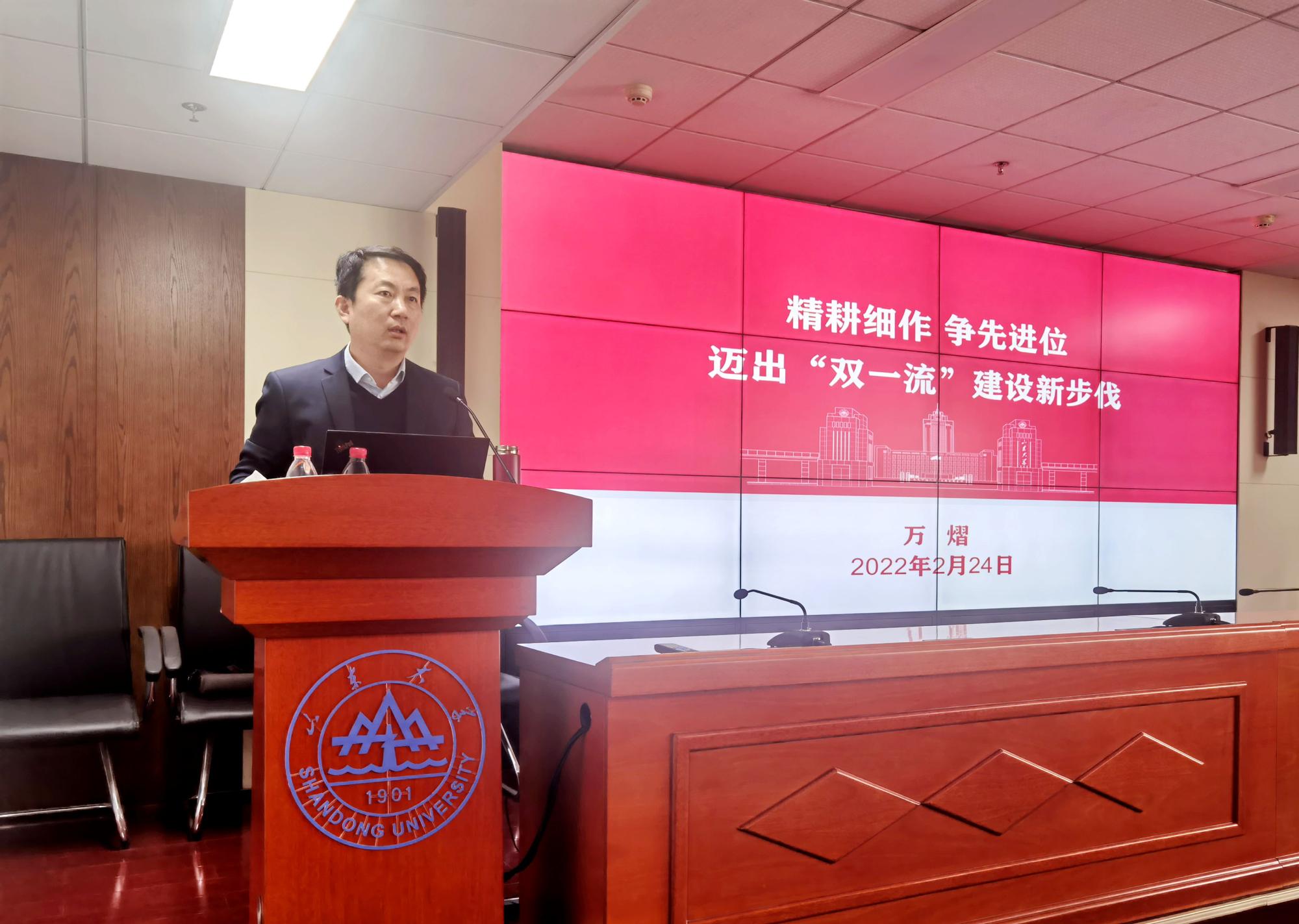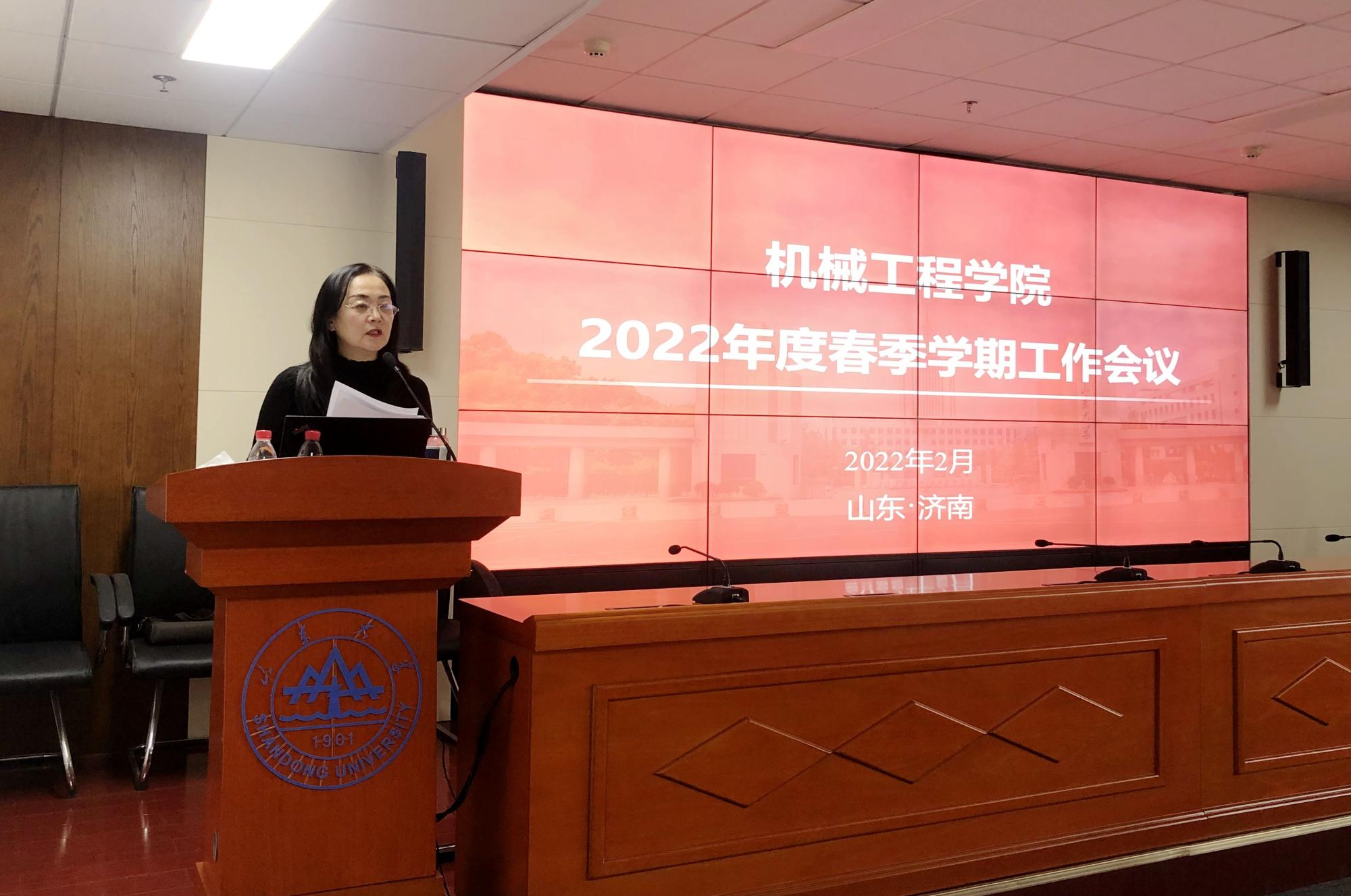 会上,万熠经理代表学院班子作新学期工作报告。他首先传达了春季新学期工作会议精神,分析解读了学校2022年工作要点9个方面31项重点任务,要求全院教职工深刻理解并找准把握好国际坐标、国家坐标、山东坐标、高教坐标和山大坐标,落实新要求、展示新气象。其后,他结合学院“十四五”规划推进、学院班子任期目标制定,在梳理查找学院改革发展难题基础上,进一步对标国内、校内先进示范,从彰显党建领导优势、着力加快改革创新、落实立德树人根本任务、着力建设一流人才队伍、着力增强学术核心竞争力、着力强化支撑保障六个方面对本年度和新学期重点工作进行部署,进一步聚焦和明确了学院发展目标和改革任务。