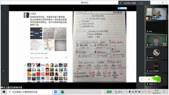 王震亚阐述了线上教学时遇到的各类问题,并逐一针对性的提出了相关问题的应对措施经验。同时分享了充分发挥腾讯会议等线上教学资源平台的体会,并介绍了相关教学资源平台可使用的一些新功能和新技巧,他指出要善于将疫情防控期间遇到的教学挑战,转化为开展线上教学改革的机遇。