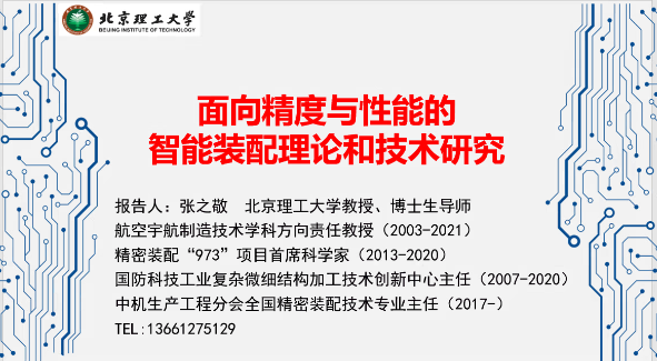 张之敬教授首先对智能制造的相关概念进行了介绍,指出了在中国实现制造强国战略的过程中,符合当前国情和最大需求的道路是面向精度与性能智能制造。在阐述智能制造智能装配技术的概念后,张教授从面向精度和性能的精密装配理论与方法、精确数字孪生建模理论和技术以及智能装配系统技术三个方面介绍了面向精度与性能的智能装配技术的研究内涵。随后,张教授结合多个案例展示了北京理工大学在面向精度与性能的智能装配系统方面所做的研究工作,并分享了一些自己的教学心得。