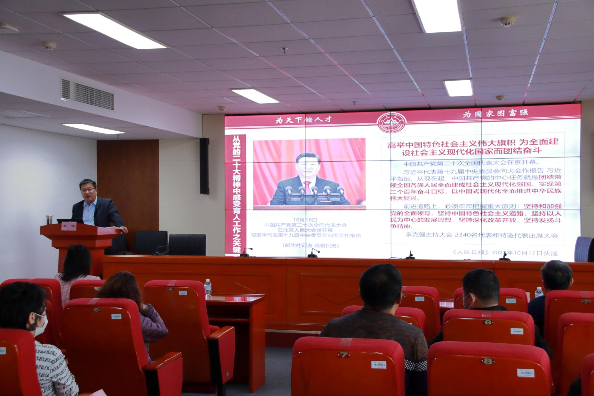 会上,朱伟以“学习贯彻党的二十大精神,切实加强班主任队伍建设,营造全员培养担当民族复兴大任时代新人的浓厚氛围”为题,从“怎么看、怎么办、怎么样”三个方面进行主题报告。朱伟表示,要从党的二十大精神、立足时代要求中感受育人工作之关键;要分析员工特点,把握工作规律,坚持因材施教,通过嵌入式、融入式、启发式工作不断提高工作成效;希望班主任到青年群体中去,心怀“国之大者”,做青年朋友的知心人、青年工作的热心人、青年群众的引路人。