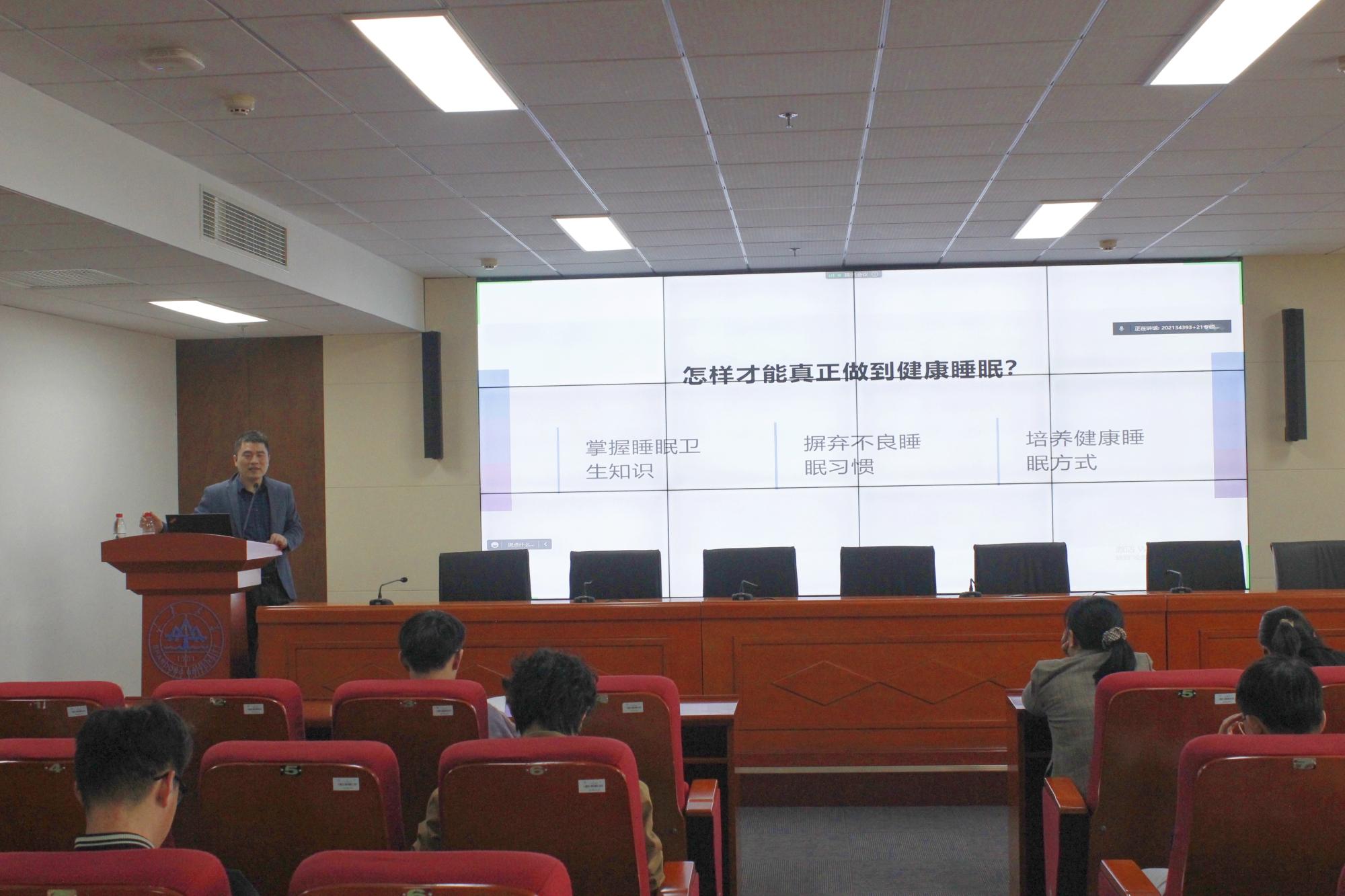 讲座最后,宋小霞进行了总结,李主任针对同学们提出的睡眠健康问题进行了解答。此次讲座参与100余人,从生理健康和实际生活角度,引导研究生重视睡眠,关心睡眠和心理生理之间的关系,指导研究生树立健康生活意识,以更高效率投入科研生活中,使研究生们受益匪浅。