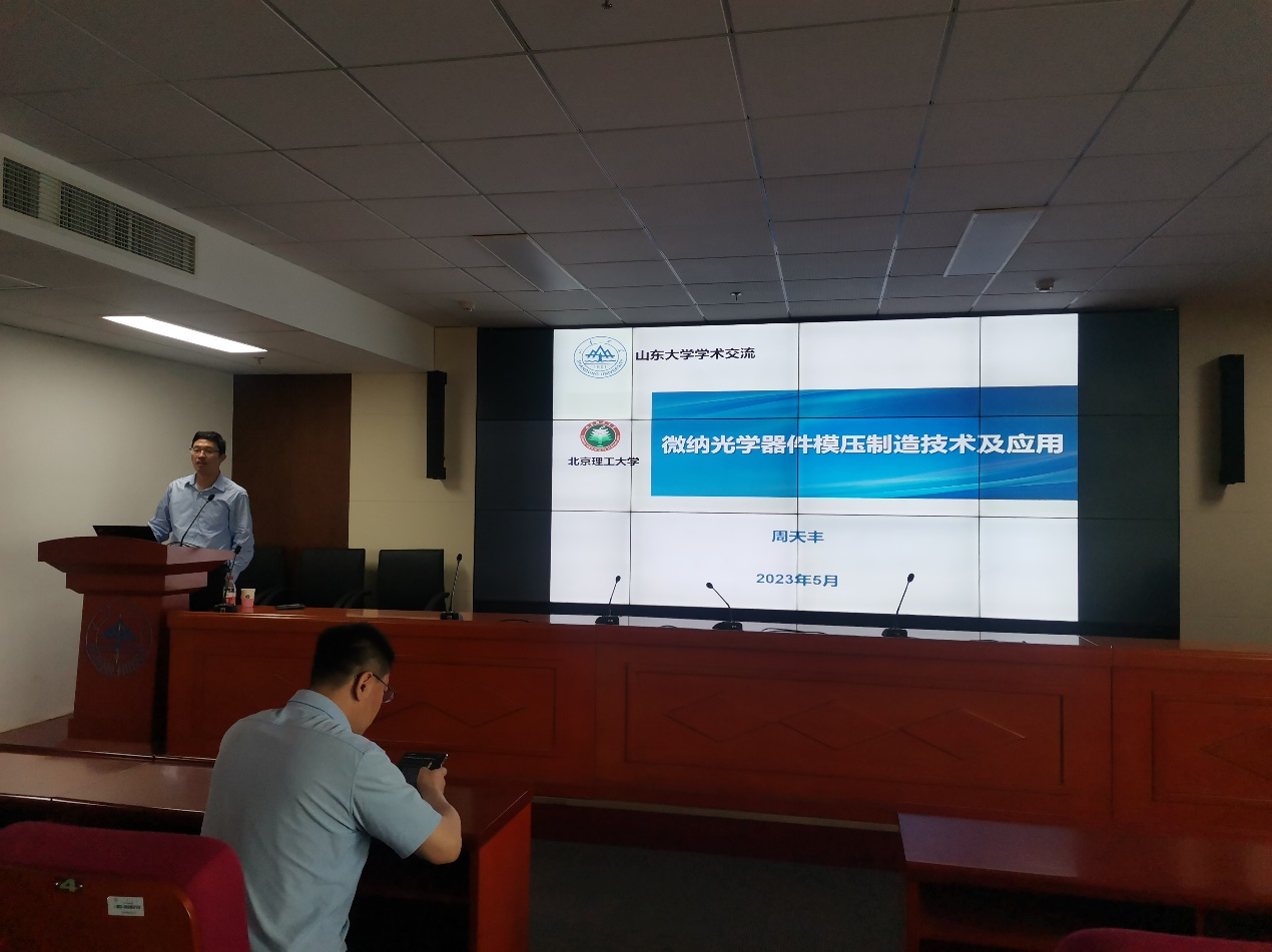 2023年5月26日下午,BV伟德官方网站承办的鼎新论坛在千佛山校区创新大厦1103举行。北京理工大学周天丰研究员做了题为“微纳光学器件模压制造技术及应用”的学术讲座。讲座由学院副经理姚鹏主持,学院部分老师和硕博研究生参与了此次讲座。