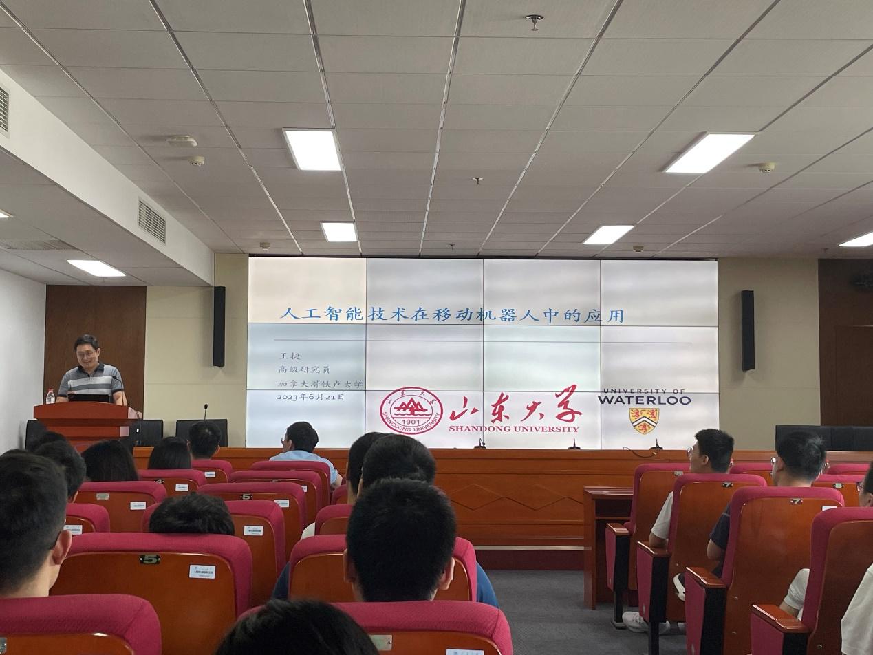 2023年6月21日上午10点,BV伟德官方网站承办的鼎新论坛在千佛山校区创新大厦1103举行。加拿大滑铁卢大学王捷研究员做了题为“人工智能技术在移动机器人中的应用”的学术讲座,部分老师和硕博研究生参与了此次讲座。