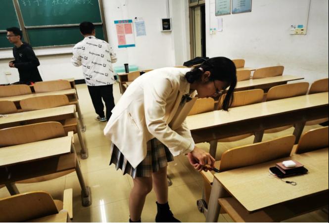 5月5日,志愿者们在社会服务部工作人员的带领下对教学楼开展“钉子户整治”活动。志愿者们按照楼层分为五组,组内负责调查的同学对本楼层教室的黑板、讲台、座椅等的紧固件进行排查。负责维修的同学则利用随身携带的工具箱,合作解决螺丝钉松动、缺失等问题。对于无法现场解决的零固件问题,志愿者们在不损坏公物且保证安全的前提下,卸下紧固件根据机械设计手册查出型号,并将记录的相关情况向有关部门汇报。